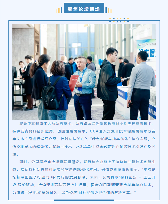 兴佑交科应邀参加第四届沥青技术论坛,共探行业 “特” 色发展新路径